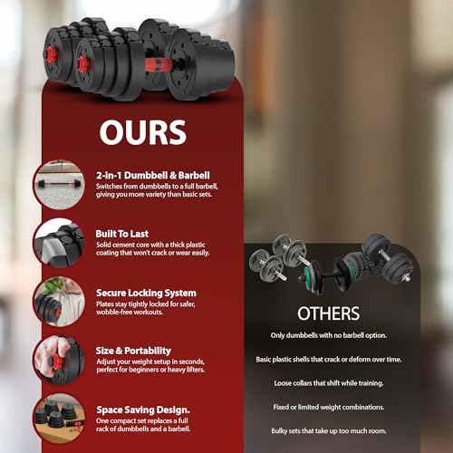 ZENO Dumbbells Set | Adjustable Dumbbells | Gym Weights | Includes Barbell | Great for Bicep & Tricep Training