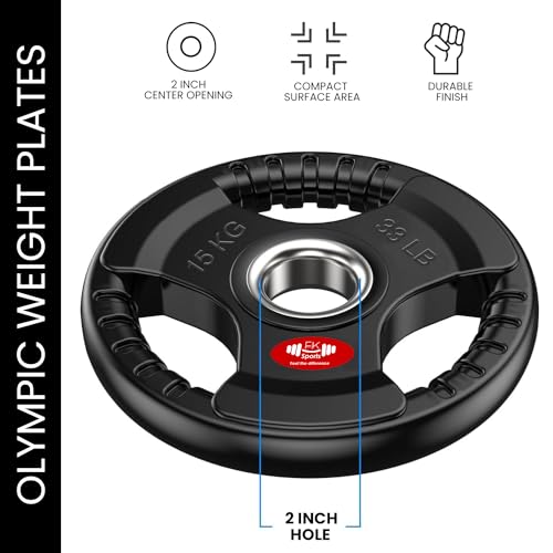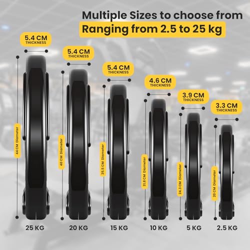 FK Sports Olympic Weight Plates with Rubber Finish – Cast Iron Core, Tri-Grip Design, 2″ Opening, Barbell Weight Set for Home & Gym Strength Training – 2.5kg, 5kg, 15kg, 20kg, 25kg Pairs