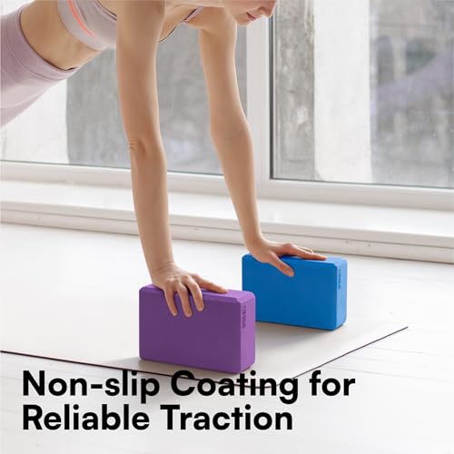 H&S Yoga Blocks Set of 2 – High Density EVA Foam Yoga Brick – Pilates Block Pillow – Yoga Block Set – Gym Accessories and Exercise Equipment – Meditation Cushions – Purple & Blue
