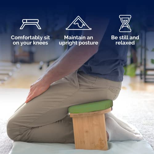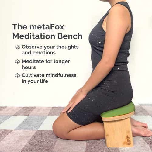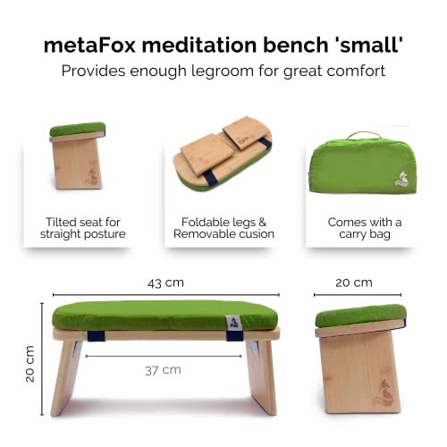metaFox meditation bench | Foldable bamboo stool with cushion and carrying bag | For your mindfulness and meditation practice | Alternative to a meditation cushion (Green)