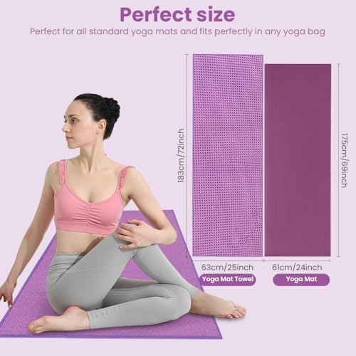 【Perfect Size】Our yoga mat towel measures 183cm x 63cm, which fits most yoga mats and can fully cover the entire yoga mat.When working out in a public gym, the disadvantages of sharing yoga mats are eliminated, and the growth of bacteria is avoided.