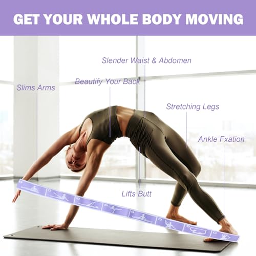 【Practical Design】Equipped with 8 adjustable loops, stretch assist pull strap allows you to customize workout intensity and enhance strength and flexibility with consistent use. Dance elastic band adopts double-sided printing design with yoga poses patterns and numbers, beginners can also imitate the posture diagram to perform effective stretching exercises.
