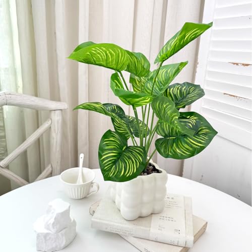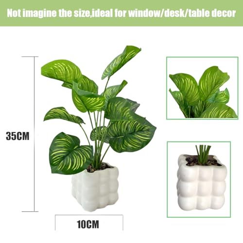 【Package Includes】You will get 1 pot artificial plant which has 12 beautiful large Leaves, measures appr. 35cm tall from the bottom of the pot(Please don’t image the tall) The morden plastic plant pot is 10cm diameter and 10cm in height.