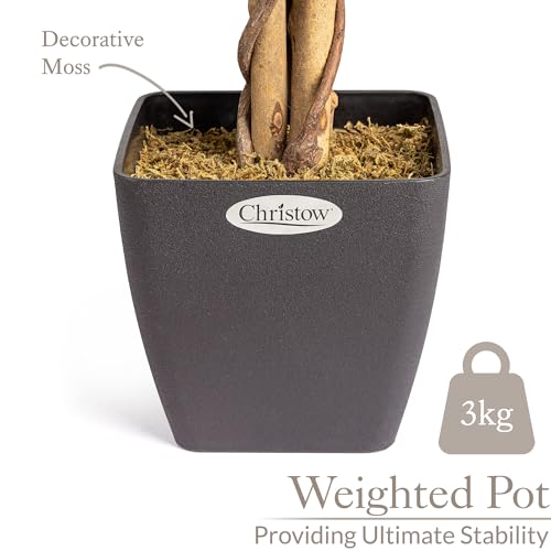 3KG WEIGHTED FAUX CEMENT POT: Each tree comes pre-potted in a stylish faux cement pot, weighted with concrete for optimal stability. As well as disguising the concrete, a layer of dark green moss adds an extra touch of realism. If you’re displaying the tree outside, we suggest placing it in a heavier pot and firming it down for extra wind-resistance.