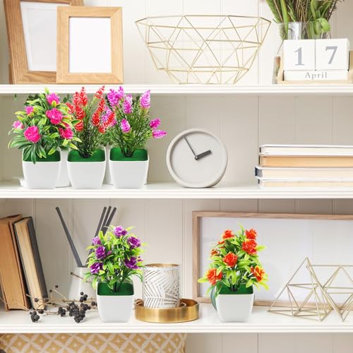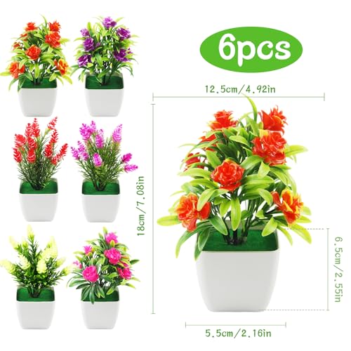 SWoob 6pcs Artificial Flowers Plants Mini Artificial Flowers in Pots Fake Plants Outdoor Indoor Suitable for Home Office Area Restaurant Decoration