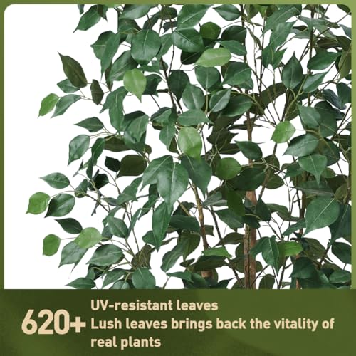 Lifelike & Realistic Design: The 180 cm Artificial Ficus Tree features green silk leaves and a real wooden trunk, offering an incredibly realistic look that adds a touch of nature to any room. This fake plant is perfect for indoor decoration with its vibrant colors and lifelike appearance, making it a stunning addition to your home or office