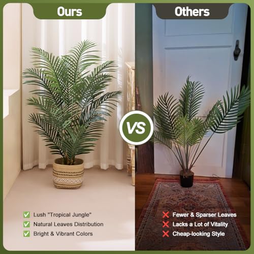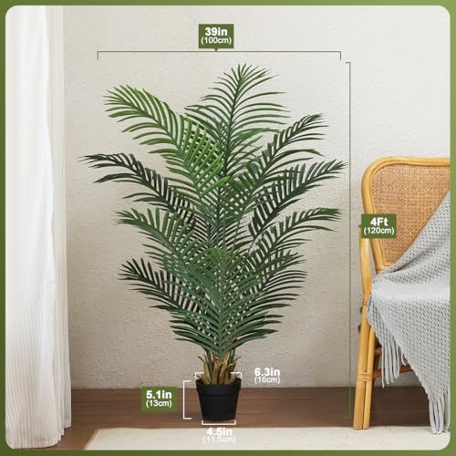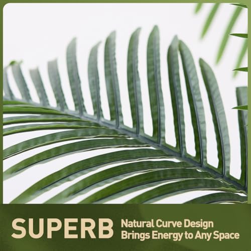 Realistic Tropical Foliage:Crafted with high-quality materials, this 120cm tall artificial palm features 12 flexible faux leaves with lifelike textures that transform your space into a lush paradise. Add vibrant green accents to your home, office, or balcony with zero upkeep