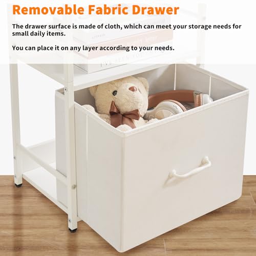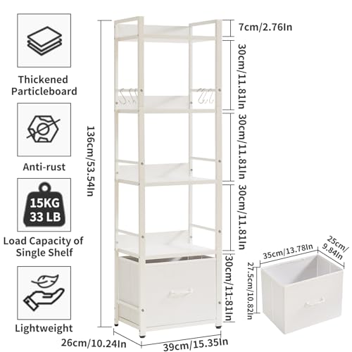 Aibiju Ladder Shelf, Bookshelf, 5 Tier Bookshelf with Drawer, Plant Stand, Living Room Bookcases for Living Room, Bedroom, Kitchen, Steel Frame,White YD-BC001W