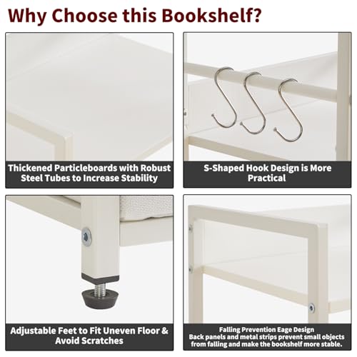 1. Sturdy Structure: This bookshelf is made of MDF board and a strong metal frame, which is sturdy and durable. Each panel can hold up to 33 lb. The storage basket at the bottom is made of Oxford cloth, which is easy to clean and waterproof. 4 adjustable feet keep balance and protect floors from scratches