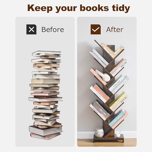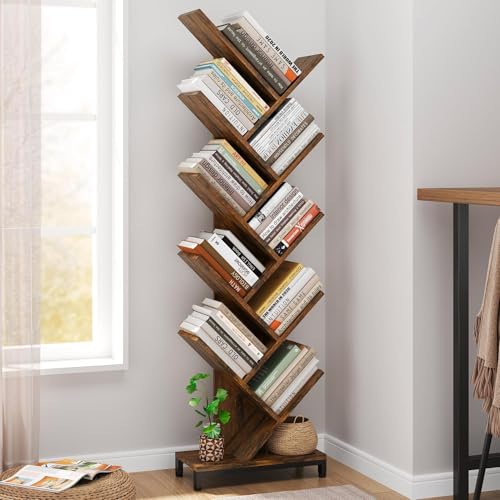 FAVOOSTY Tree Bookshelf Tall, 10 Tier Floor Standing Bookcase, Corner Shelf with Wooden Shelves for Living Room, Bedroom, Home, Office