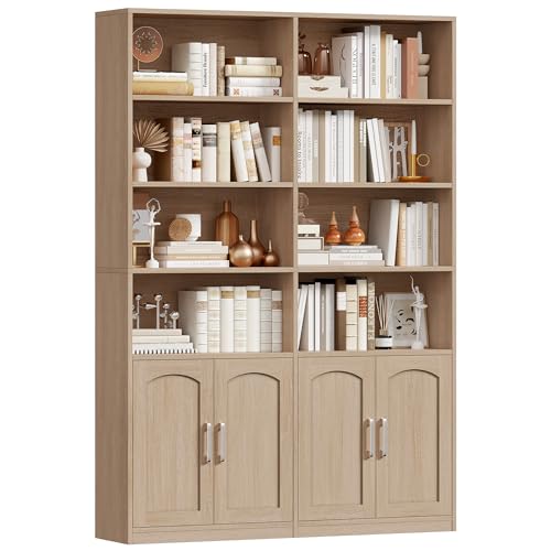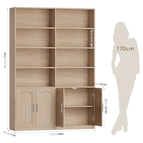 Open and Closed Storage Combined: The 185.5 cm high and 115 cm wide bookcase contains 8 open compartments and 4 closed compartments with doors. Closed storage area with doors can store sundries and protect privacy while keeping out dust. The 8 open compartments are easy to access and ideal for storing books, magazines, photo frames and displaying photo frames and collectibles