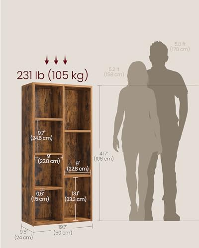 VASAGLE Bookcase, Bookshelf, Storage Shelf with 7 Compartments, Standing Shelf, Cube Shelf, for Living Room, Home Office, Dinning Room, Rustic Brown LBC27BX