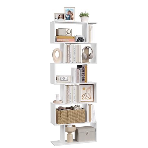 VASAGLE Bookshelves, 6-Tier Bookcase, Room Divider, Cube Display Shelf, Freestanding Storage Shelf, Modern Style, for Living room, Bedroom, Office, White LBC61WT