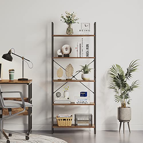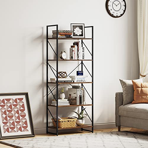 YITAHOME Bookcase 5 Tiers, Floor Standing Book Shelf, Wooden Shelf and Metal Frame Book Rack, Display Storage Rack Shelving Units for Living Room, Home Office – Rustic Brown Bookshelf