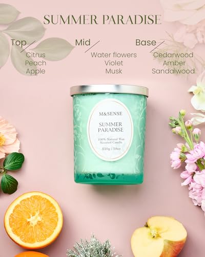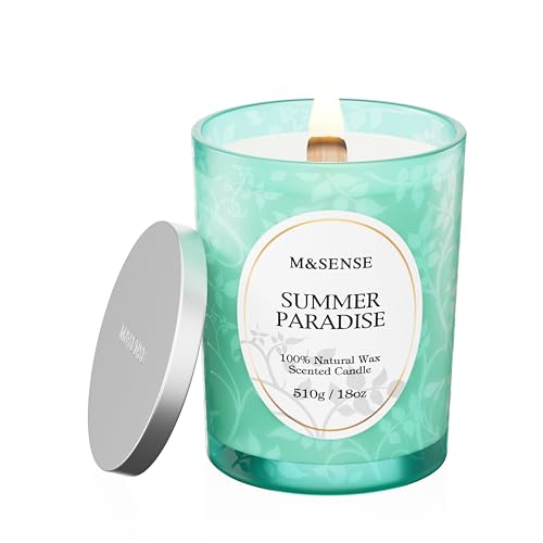 M&SENSE Summer Paradise Large Soy Scented Candles Gifts for Women Men 510g 100 Hours Organic Non Toxic Candle for Home Decor Friend Wooden Wick Summer Aromatherapy Candle for Stress Relief