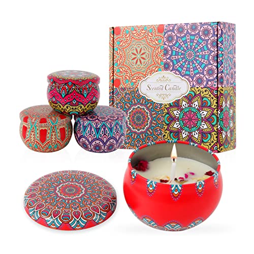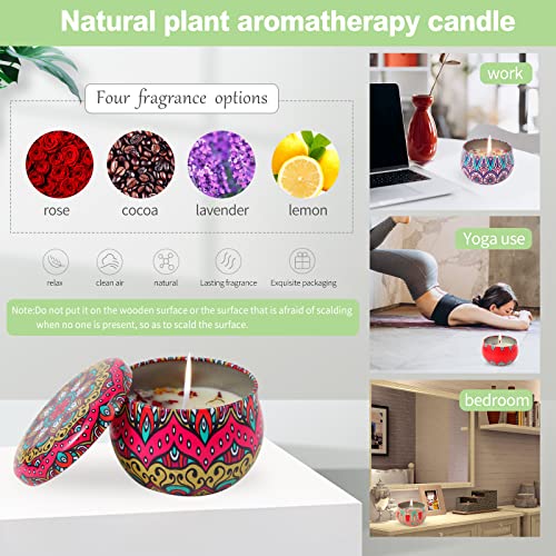 Scented Candles Gift Set for Women Rose Cocoa Lavender Lemon 4 Scents Soy Wax for Household Friendship Gift Sets New Home Gifts Sister Presents Various Festivals Gift Sets