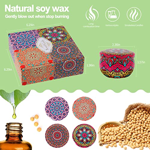 [Poratable Reusable Travel Tin]Suitable for indoor and outdoor, camping or vacation, these candles are ideal companions when traveling. Each jar is beautifully patterned, looks stylish and will add ambience to your home. Once fully burnt, these pretty jars can be reused as decorative storage for accessories or planters.