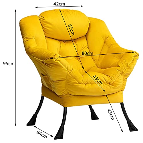 HollyHOME Armchair Velvet Comfy Chair for Living Room Bedroom Reading Chair Accent Chairs Relax Arm Chairs with Steel Frame, Yellow