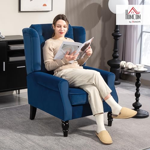 HOMCOM Retro Accent Chair, Velvet Wingback Armchair with Wood Frame Button Tufted Design for Living Room Bedroom, Blue