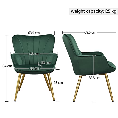 Yaheetech Modern Tub Chair, Velvet Fabric Living Room Armchair, Side Vanity Chair with Curved High Back and Thick Soft Padded Seat for Bedroom Makeup Reading Nook, Green