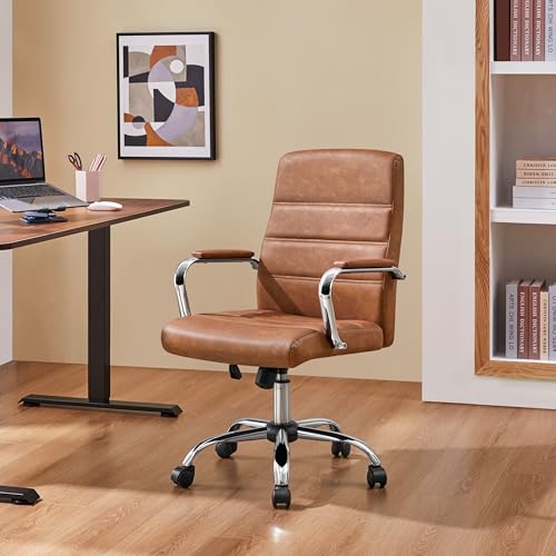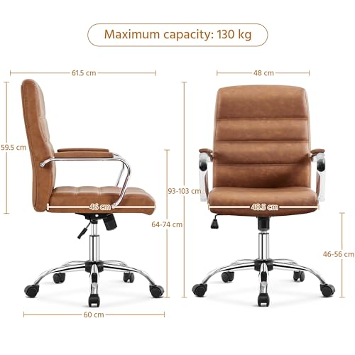 Yaheetech Office Chair PU Leather Computer Desk Executive Chair Height Adjustable Swivel, with Arms and Back Support for Home Study Work, Retro Brown
