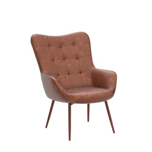 A Striking Furniture Addition: Defined by its retro backrest, biscuit tufting and wood-tone flared legs, our faux leather accent chair can easily become a focal point in any room. The generously-sized encompassing seat offers a perfect place to relax and unwind.