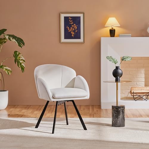 Yaheetech Swivel Tub Chair, Flower Shape Chenille Armchair, Cute Vanity Chair with Removable Seat Cushion for Living Room/Bedroom/Makeup, White