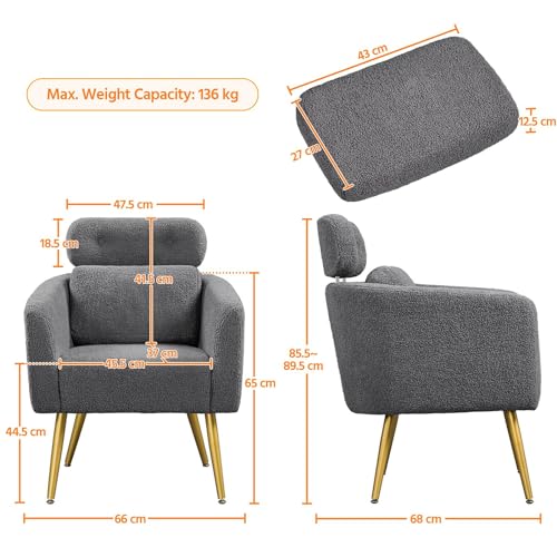 Yaheetech Tub Chair, Cozy Living Room Chair with Adjustable Headrest, Boucle Armchair with Lumbar Pillow and Golden Legs, Modern Accent Chair for Bedroom Lounge Waiting Room Office, Dark Grey