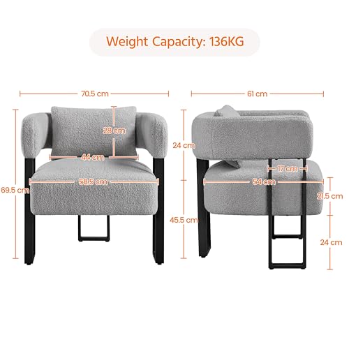 Yaheetech Tub Chair, Modern Boucle Fabric Vanity Chair with Metal Legs and Lumbar Pillow, Upholstered Armchair for Living Room Makeup Room Bedroom, Grey