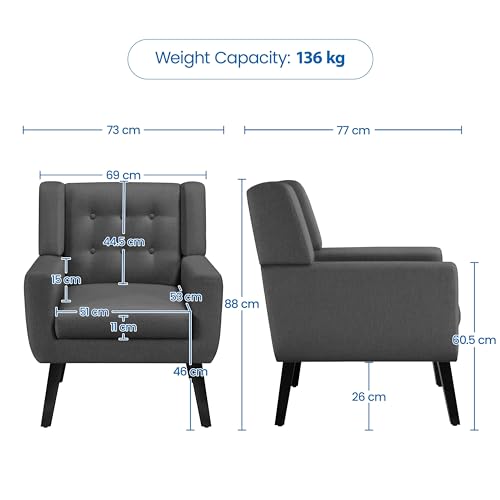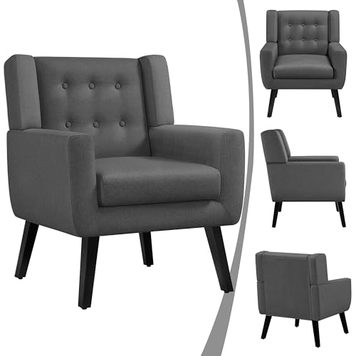 Yaheetech Tub Chair, Modern Button Tufted Armchair, Linen Fabric Sofa Chair for Living Room Bedroom Reading Nook, Dark Grey