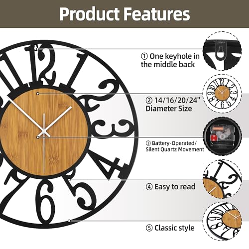 【KEEP PERFECT TIME】 Our large wall clock powered by a single AA battery (not included), ensuring accurate timekeeping without the hassle of winding. It is also very silent to provide a good environment for working or sleeping.
