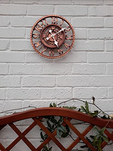 Taodyans Outdoor Wall Clock, Garden Clock, 12 in Waterproof Clock, Quartz Battery Operated Clocks, Retro Home Kitchen Living Room Decor Clocks -Not Silent (Copper)