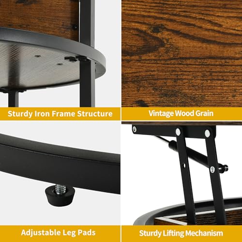 Lift up coffee table: The round coffee table features a lift mechanism, which allows you to easily raise or lower the tabletop. This flexibility caters to different scenarios and usage needs, allowing you to create a comfortable and convenient living space.