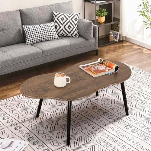 FEUFOAM Rustic Coffee Table Irregular Wood Grain Desktop Coffee Tables Simple Modern Cloud Shaped Center Table Floor Standing Table For Living Room Home Office