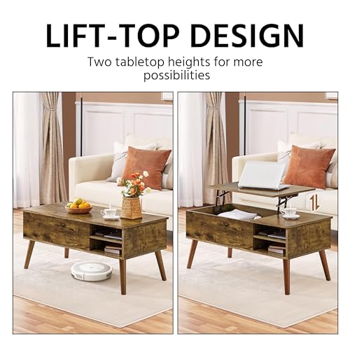 Modern and Stylish: Colored in an exquisite rustic tone and accented with tapered legs, this lift-top coffee table with storage is a perfect expression of modernity and style, which can effortlessly integrate with any lodge or modern farmhouse aesthetic