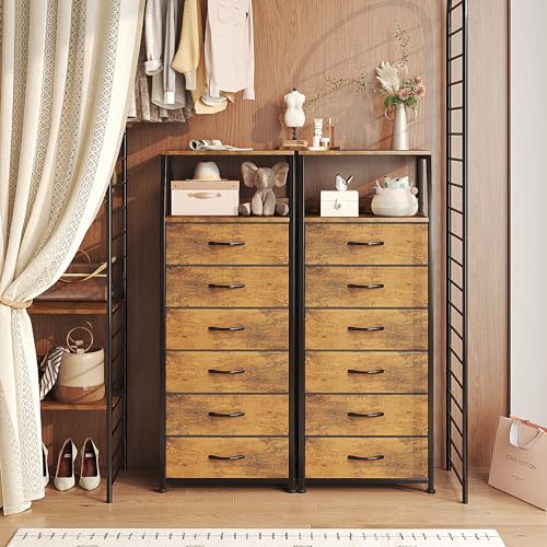 CAIYUN Chest of Drawers Bedroom with 6 Drawers, Tall Fabric Dresser with Shelf, Fabric Dresser for Entryway Hallway Living Room, Closet Storage Drawer, Rustic Brown