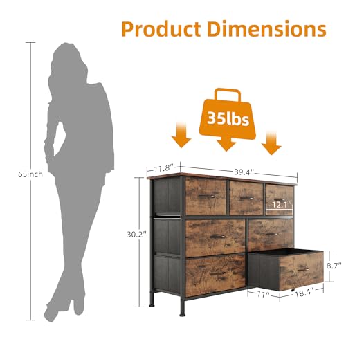CAIYUN Chest of Drawers for Bedroom with 7 Drawers, Fabric Storage Drawer, Tall Brown Hallway Storage Unit