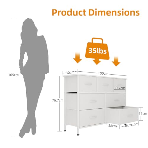 Spacious and Organized Storage: The 7-drawer dresser offers ample storage space to keep your belongings neatly organized. With seven individual drawers of varying sizes, you can easily store and categorize your clothing, accessories, or other personal items.