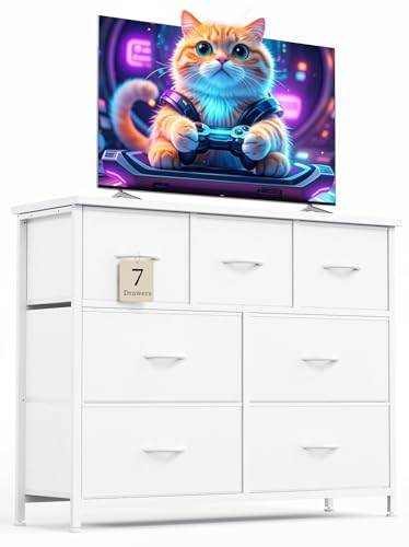 CAIYUN Chest of Drawers for Bedroom with 7 Drawers, Fabric Storage Drawer, Tall White Hallway Storage Unit