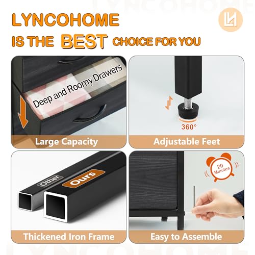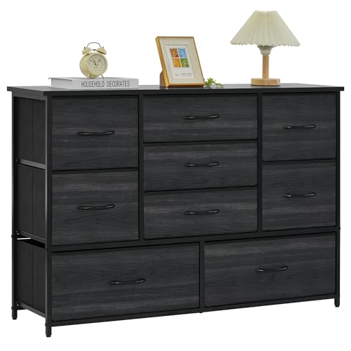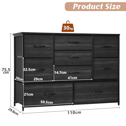 LYNCOHOME Black Chest of Drawers for Bedroom, 9 Drawer Fabric Dresser Storage Organizer, Wide Dresser TV Stand for Bedroom, Living Room, Entryway, Nursery