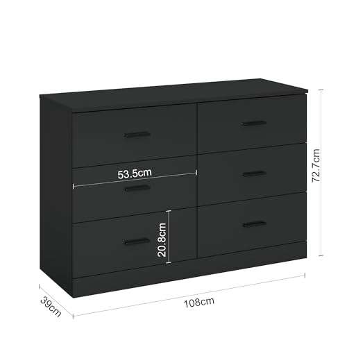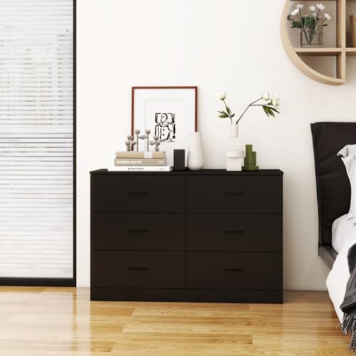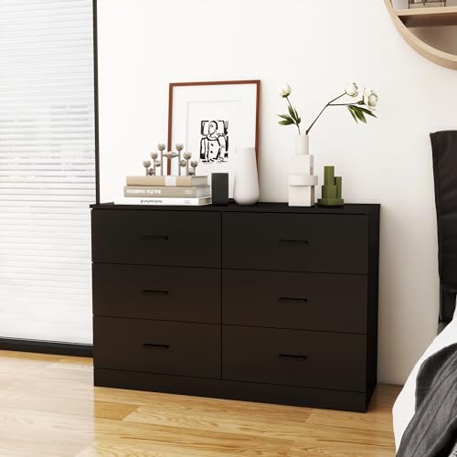 Wooden 6 Drawers Dresser with Handle, Large Size chest of drawers Heavy Duty Storage Organizer Unit for Bedroom Living Room Furniture (Black, 6 Drawers)