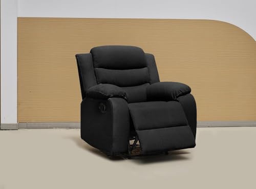 - Finished in a dark fabric span “true” Comfy and durable. Firm to medium padding A reinforced solid wooden frame Premium foam premium spring coil package Easy to use manual recliner mechanism