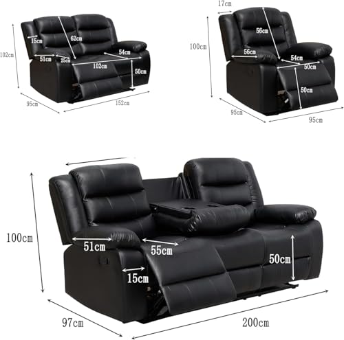 Be the first to review “Modern Fabric Manual Recliner Sofa Set – 3+2+1 Seater Suite For Living Room With Dropdown Table & Cup Holders (Black, 3+2+1)”