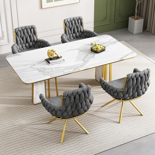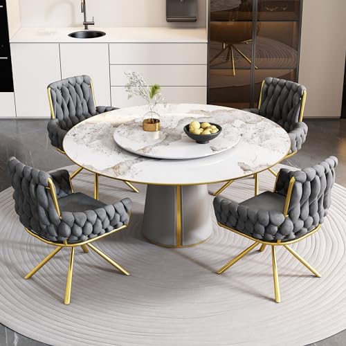 ModernLuxe Dining Chair Set of 4, 360° Swivel Armchair with Metal Support Legs for Dining and Living Room Vanity Gray