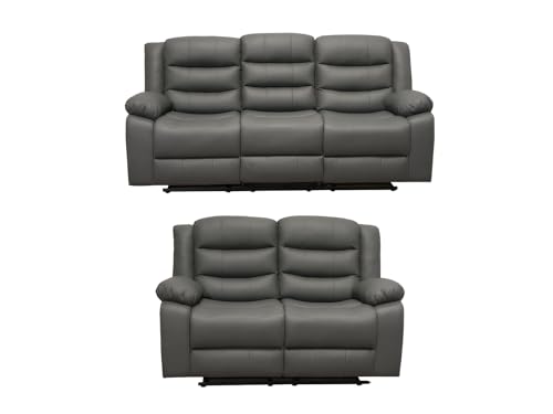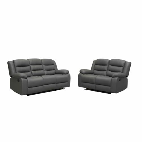 SQUAREBOXX Roma Recliner Sofa Set, Padded Armrests, Lumbar Support, High Density Foam Cushions (Grey Leather, 3 + 2 Set)