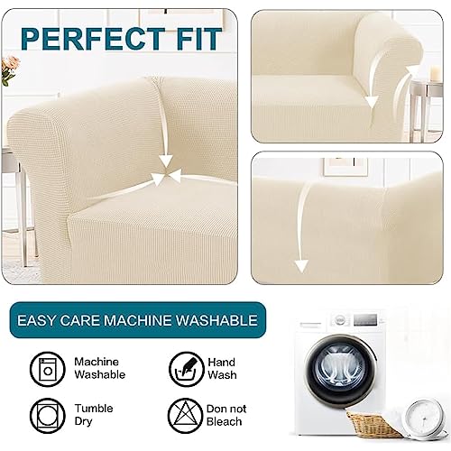 BXFUL Stretch Chesterfield Sofa Cover 1 Piece Couch Cover for Living Room Soft Non-Slip Sofa Slipcover Furniture Protector for Dogs Feature Thick Jacquard Fabric (Sofa,Beige)