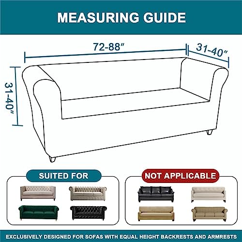 -MEASURE SIZE: Our 1-piece upgraded jacquard stretch sofa slipcovers are specifically designed for Chesterfield-style sofas. Chair size measures up to 32-47 inches wide, Loveseat size measures up to 58-70 inches wide, Sofa size measures up to 72-88 inches wide. Please measure your sofa in advance and compare it to our size chart.