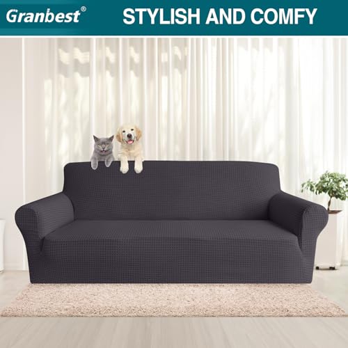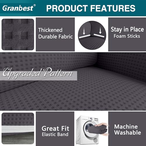 Granbest 2024 Cross Grid Thicken Sofa Cover 3 Seater Jacquard High Stretch Couch Cover Four Seasons Universal Sofa Slipcover for Pets,Dogs, Children(Checkered Charcoal Grey, 3 Seater)