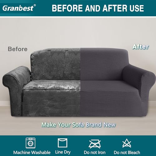 🌈UNIVERSAL COVER: Thanks to its premium textiles and excellent resiliency, this magic sofa covers for living room is suitable for most type of couches. Highly recommended for both fabric sofas and leather sofas. High breathability and skin friendliness make these sofa covers universal for all seasons. If you are looking for a universal couch cover, Granbest is your ideal choice.