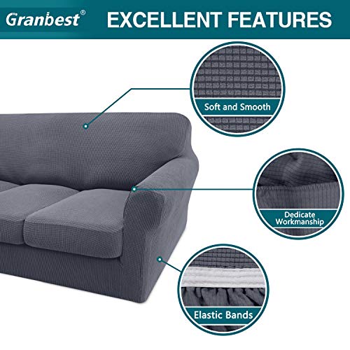 Granbest Checkered Couch Cover for 3 Cushion Couch High Stretch Sofa Cover 3 Seater Washable Sofa Slipcover for Dogs Pets Slip Resistant Furniture Protector (3 Seater, Grey)
